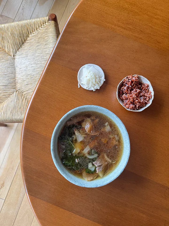I had the idea – and desire – for a nourishing ritual combining Benoît’s unforgettable fresh, simmered bone broth and the plant/berry/mushroom decoctions created with Azusa. This Fresh Bone Broth + Decoctions ritual would be offered in a very limited edition this winter, as a service for my close circle.
